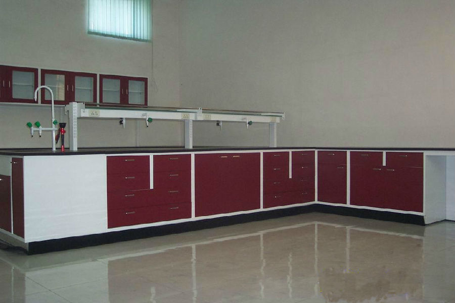 B.千思板:采用13mm厚荷兰进口TRESPA实验室台面板,四周边缘加厚至26mm,边缘做圆角磨边处理,符合人体工学设计,具有抗撞击、耐酸碱、耐腐蚀、耐刻刮、易清洁、抗紫外线、防静电等特点。
